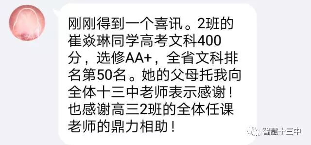 崔焱琳,文科,400分,历史A+,政治A,全省第50名,全市第4名。